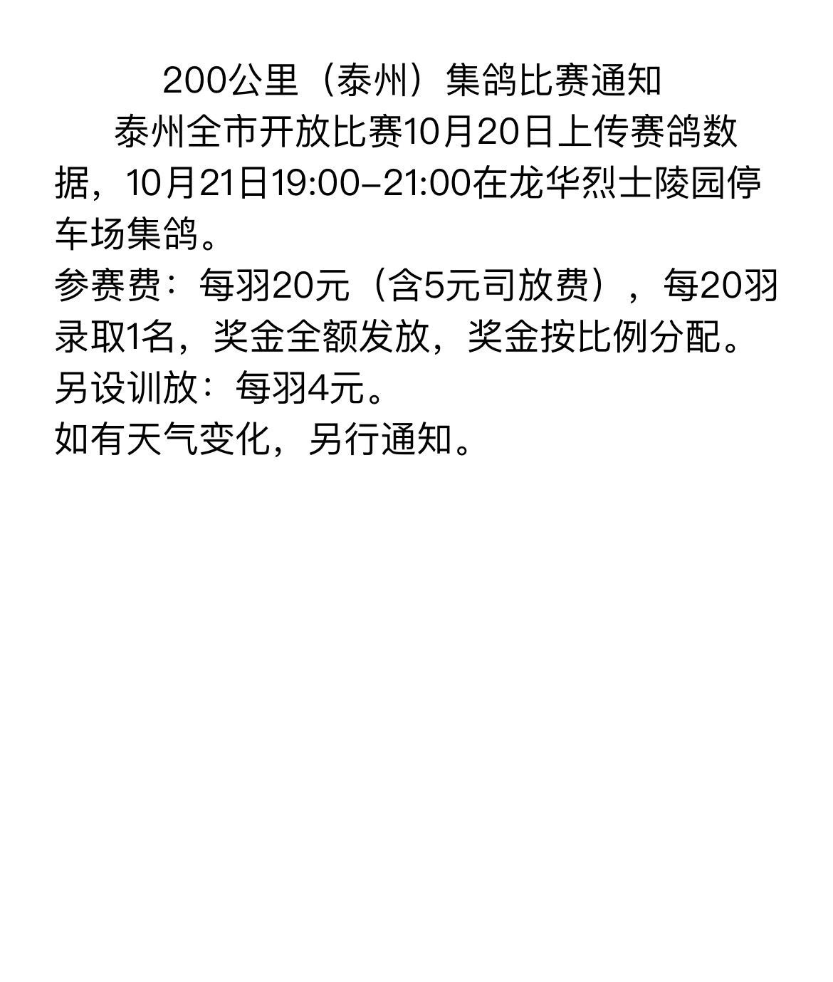 200公里泰州比赛通知