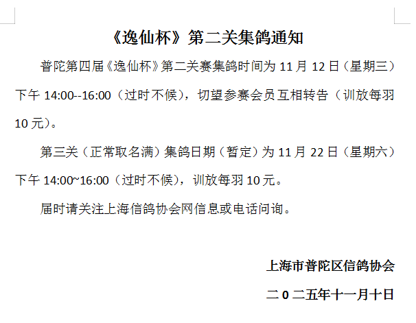 《逸仙杯》第二关集鸽通知
