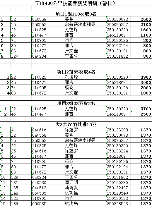 宝山400KM技能赛获奖明细(暂排)