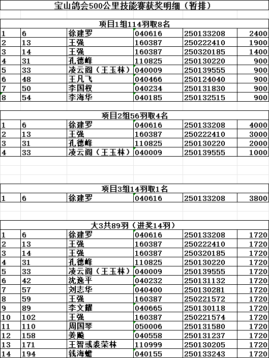 2025年秋宝山鸽协500KM(淮北)技能赛获奖明细(暂排)