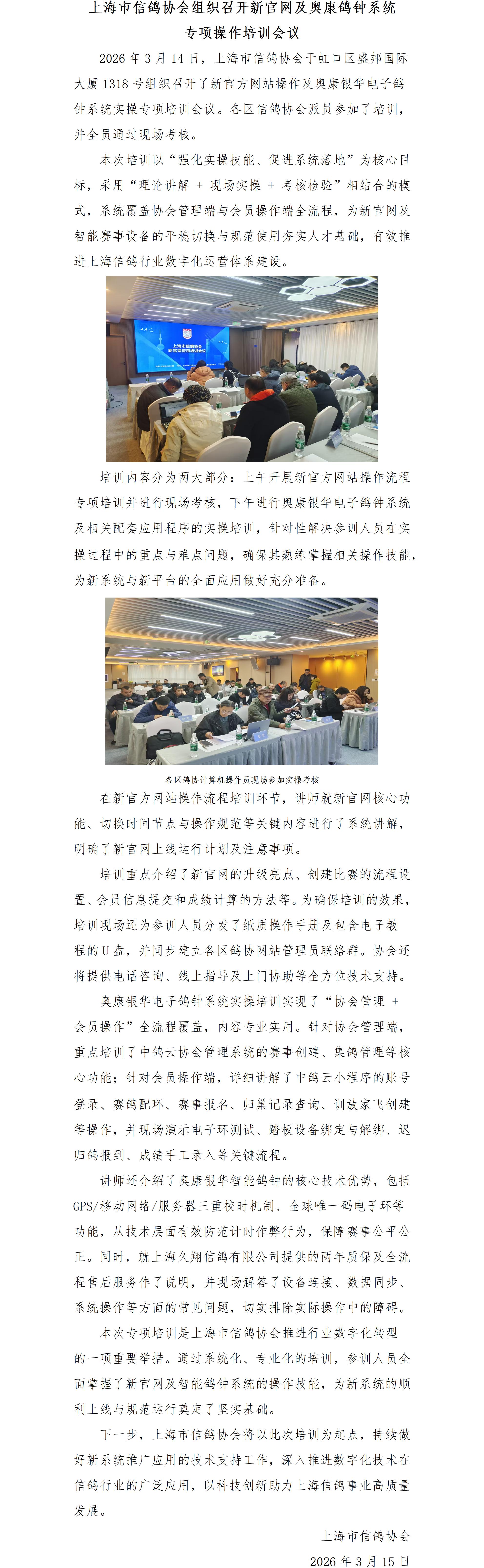 上海市信鸽协会组织召开新官网及奥康鸽钟系统专项操作培训会议