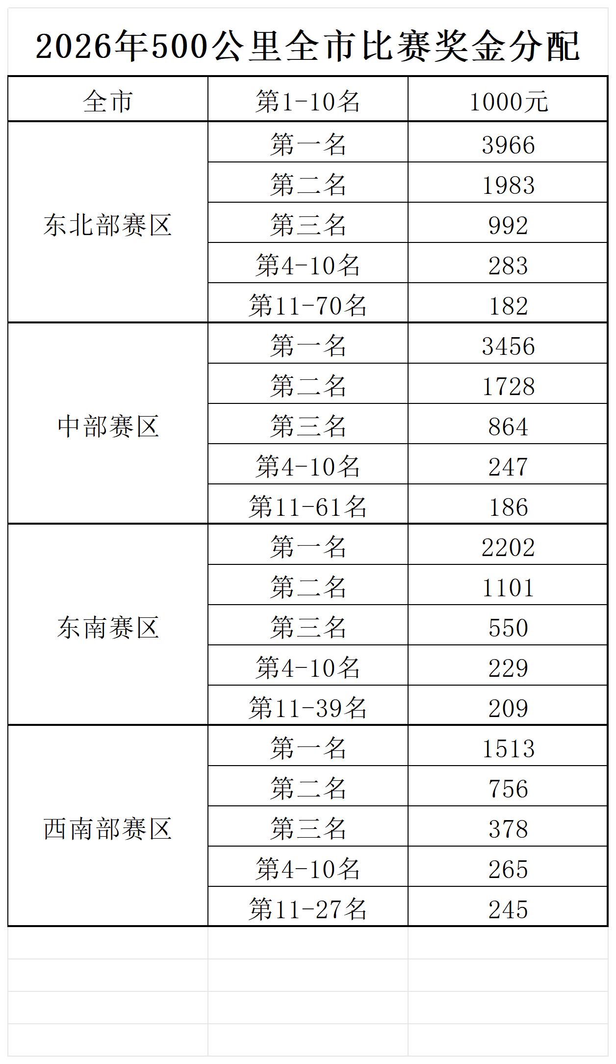 2026年上海市500公里全市比赛奖金分配