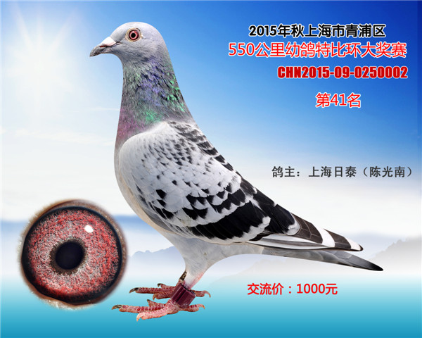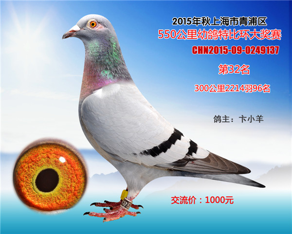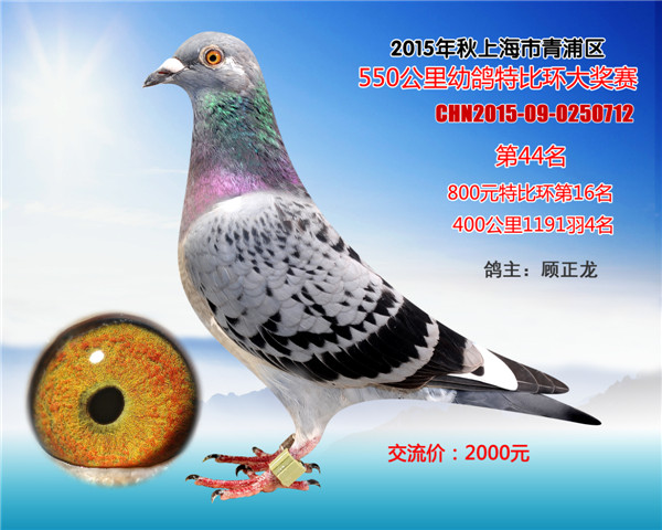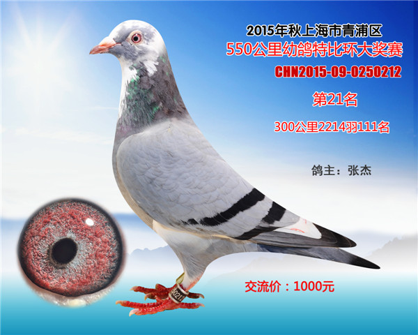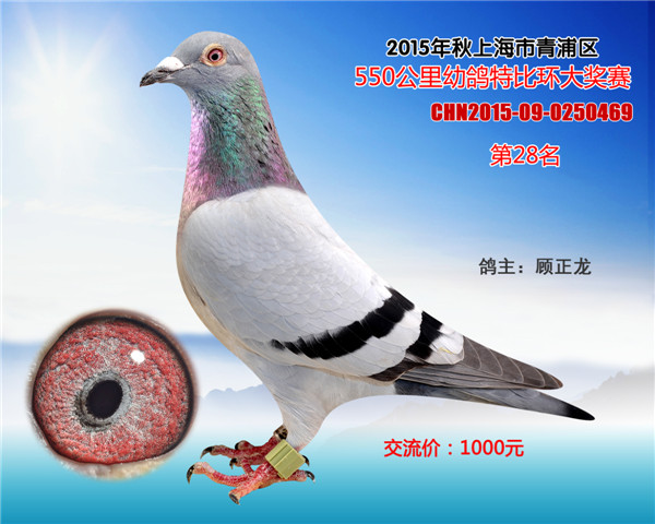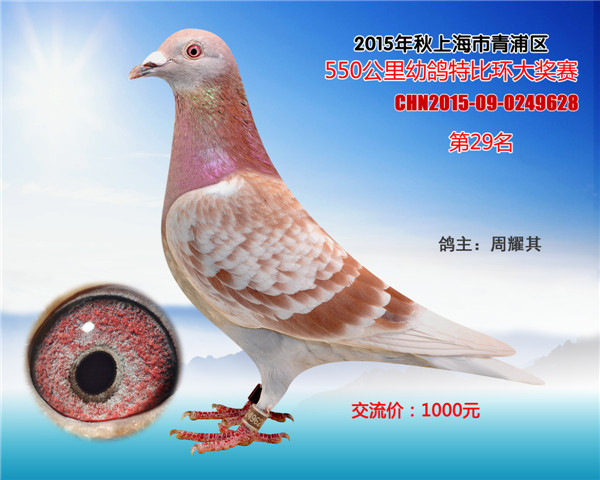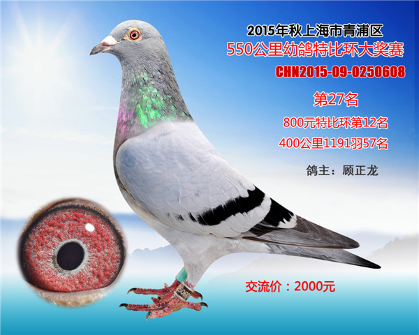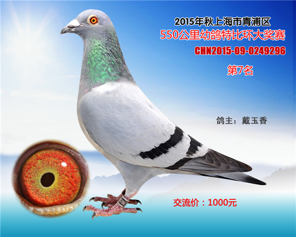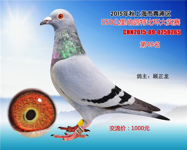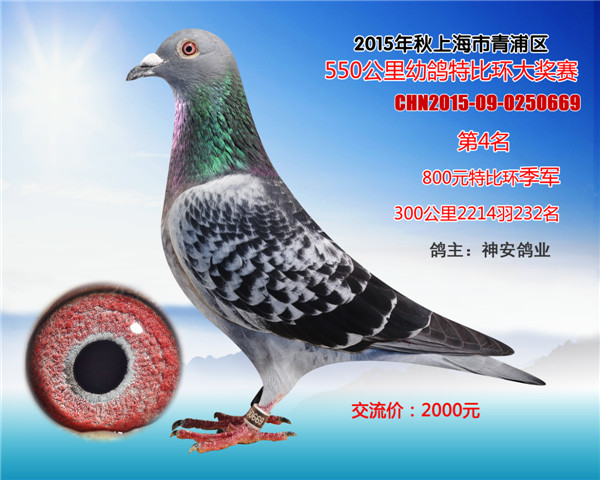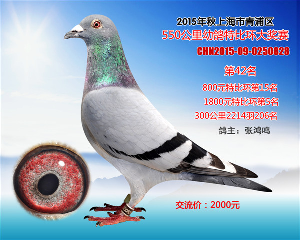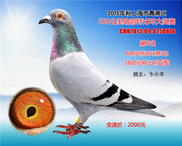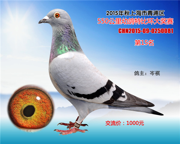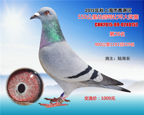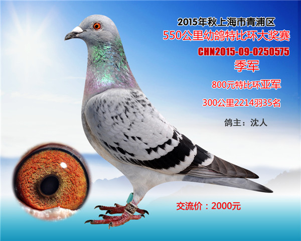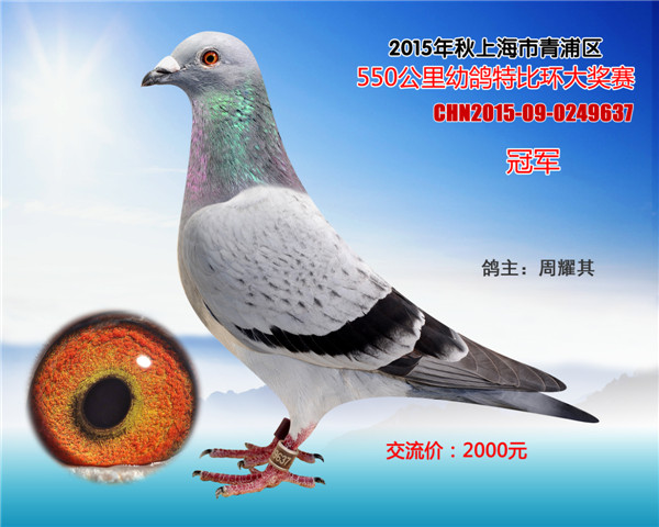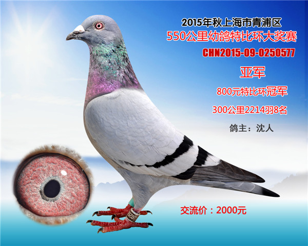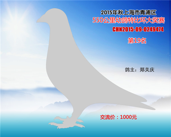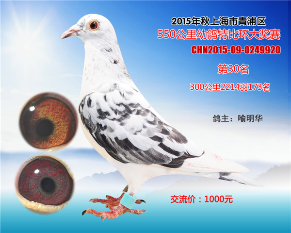 转发:2015年青浦区幼鸽550公里特比环优胜鸽