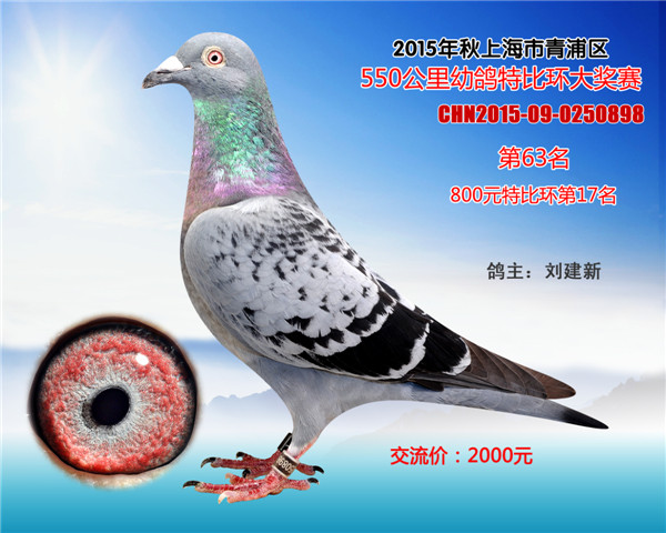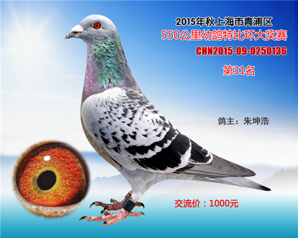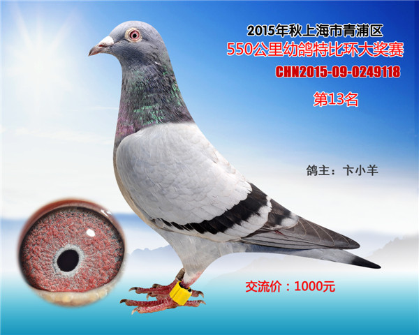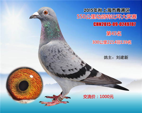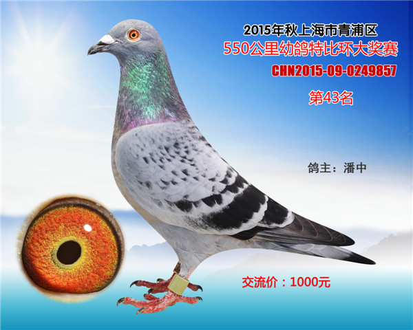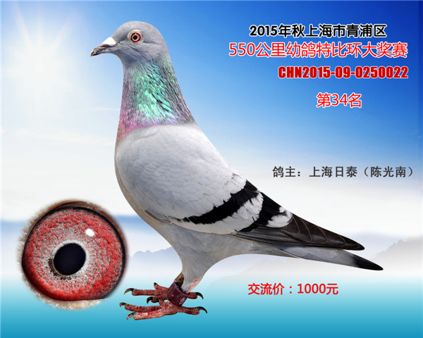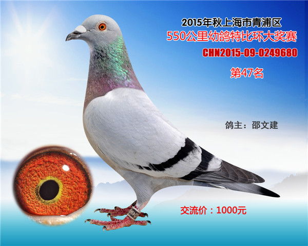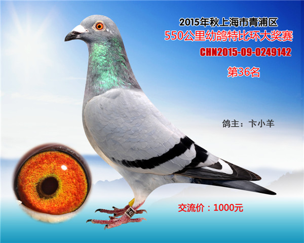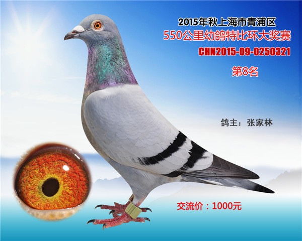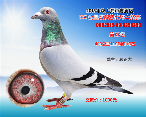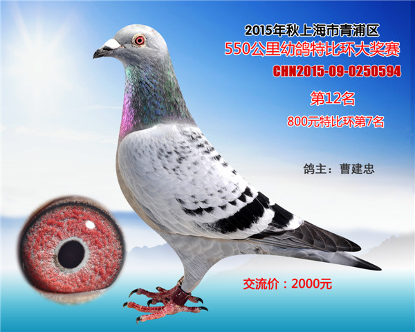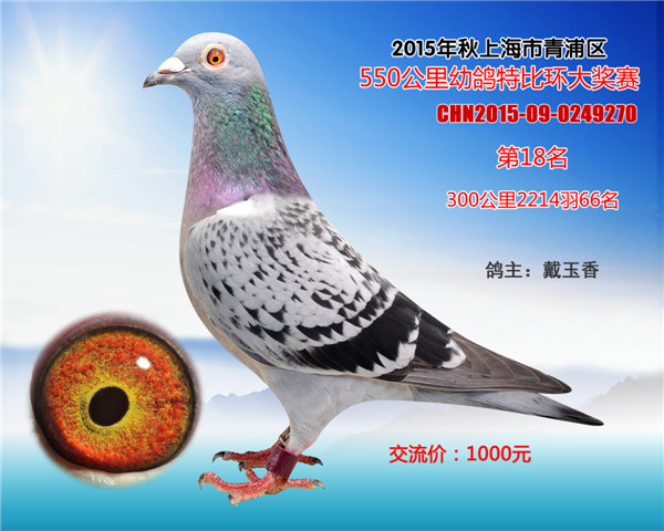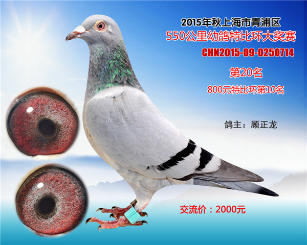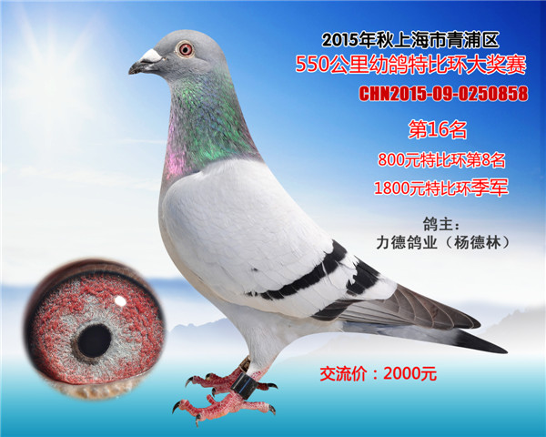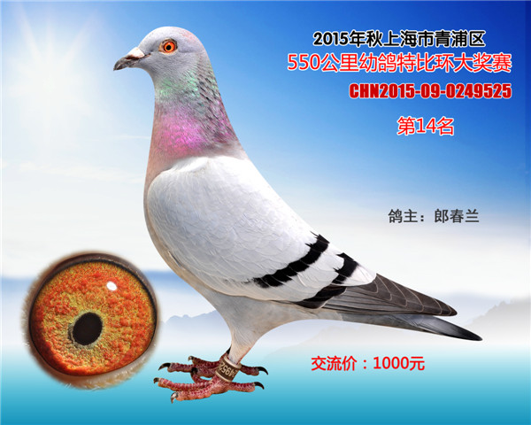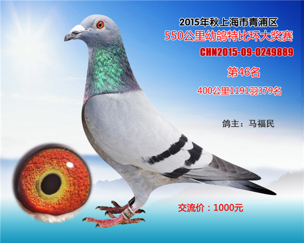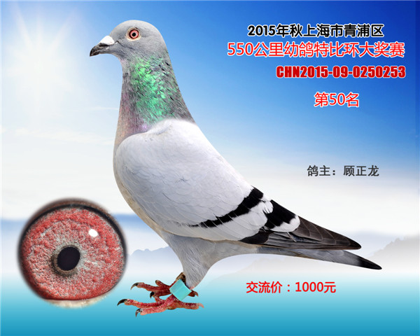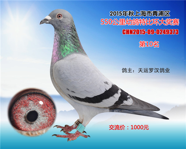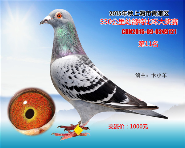 转发:2015年青浦区幼鸽550公里特比环优胜鸽