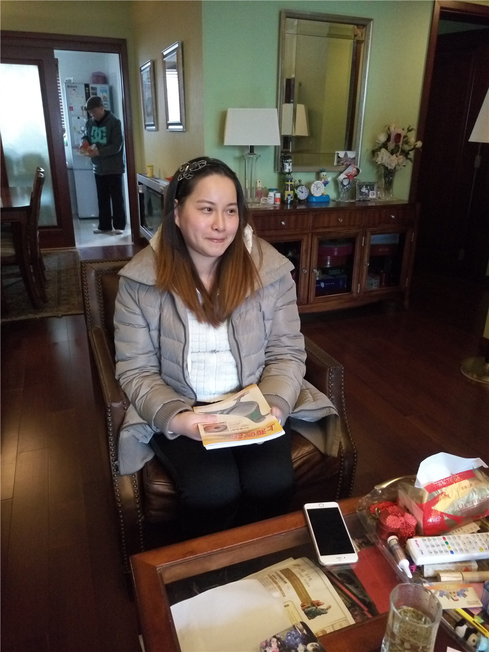 3月10日午后,上海市信鸽协会和《中华信鸽》、《上海信鸽》的记者,带着上海市信鸽协会会长张惠民和秘书长张雷的问候来到吴女士家登门拜访,并向她赠送了庆贺节日的蛋糕和信鸽专业杂志以示感谢。在交谈中得知,吴女士今年30多岁,曾是一家国企上市集团公司的白领,三个月前在美国生了第二个宝宝后回国,目前在家担任全职太太照顾两个孩子。当问起为何出手救治信鸽时,吴女士说道:“信鸽是吉祥的动物,也是和平的象征,爱护它是人类应尽的义务。”在一旁的父亲对女儿的善举也非常自豪,他告诉大家,女儿曾在多年前,也成功救起过一只从鸟巢里跌下的雏鸟,并把它养大后放归自然。