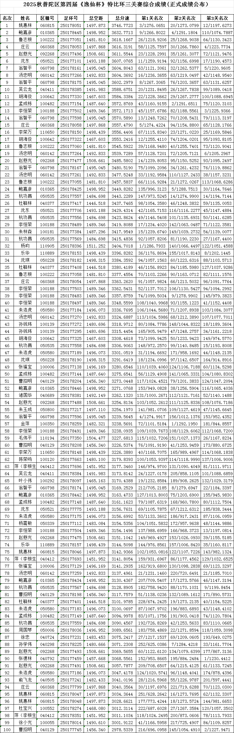2025年秋普陀区第四届《逸仙杯》特比环三关赛综合成绩(正式成绩公布)